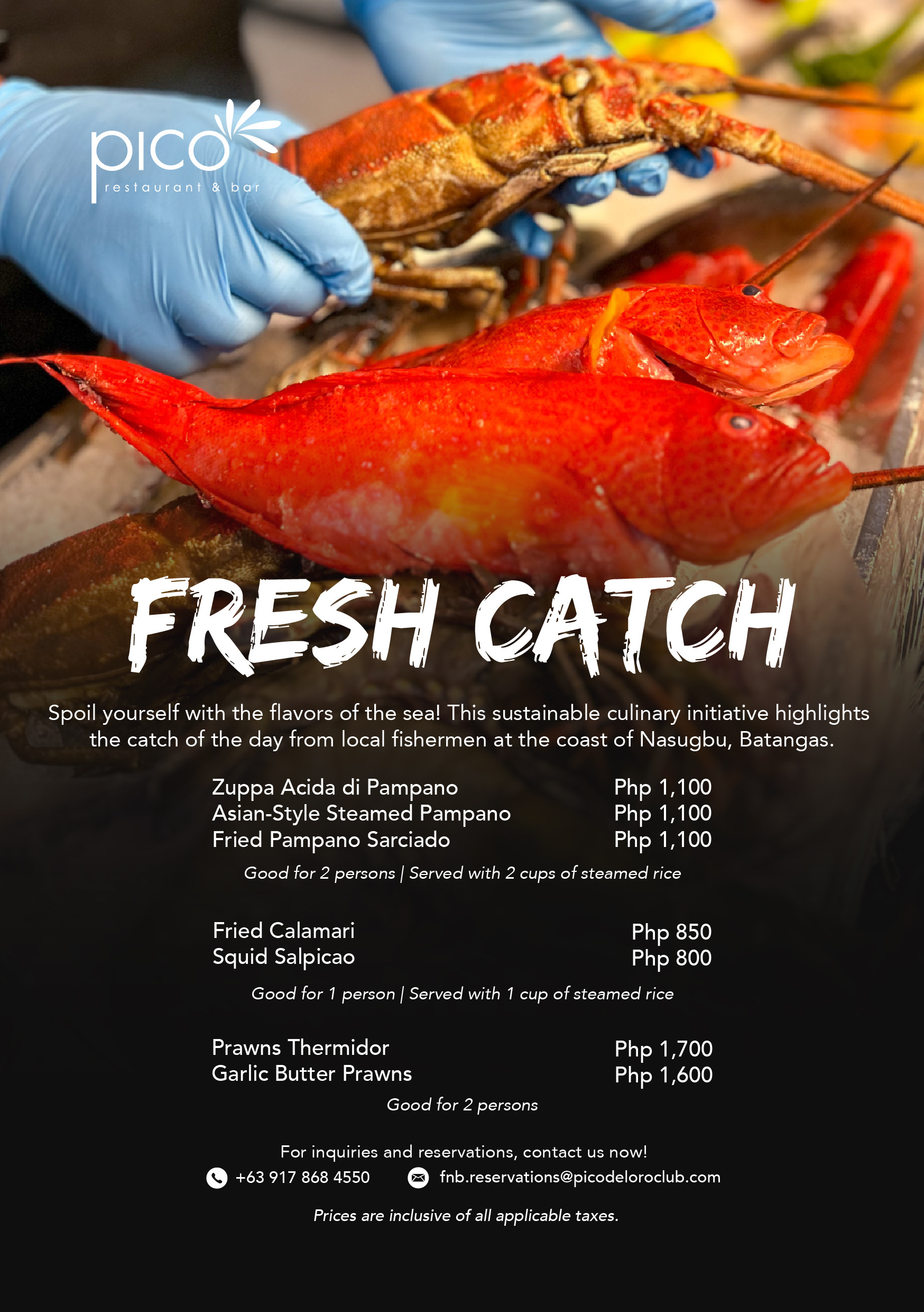 Spoil yourself with the flavors of the sea! This sustainable culinary initiative highlights the catch of the day from local fisherman at the coast of Nasugbu, Batangas.