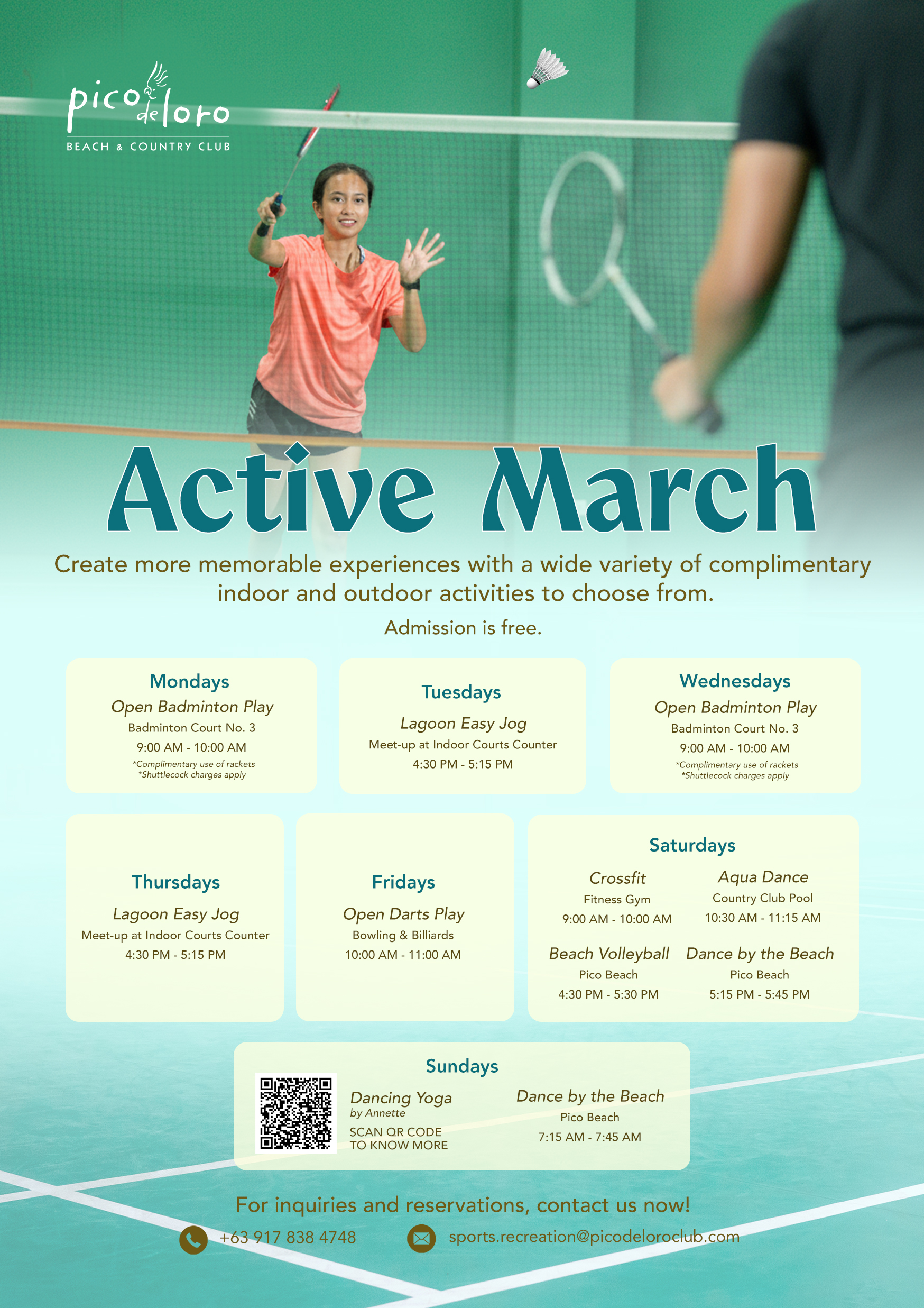 Returning guests who show us a photo of themselves in a past badminton, tennis, or pickleball activity will get a one-time freebie in their next game.